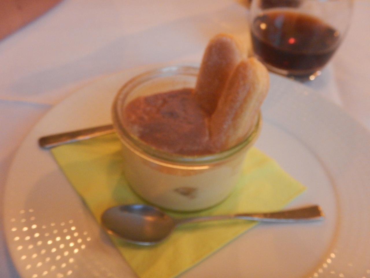 お腹が一杯でしたが、何が何でもデザートのティラミスを食べたく注文。ウエイターが気を利かしてスプーンを2つ持ってきてくれました。日本で食べるティラミスと異なり美味しかったです。パンはイタリアでは注文しなくても付いてきて、料金を払うことになります(その代わりチップ不要です)。今までのレストランで提供されたパンは、チップ代わりの申し訳程度のパンでしたが、ここのパンは違います。ホテルのブッフェで出されるパンの水準には十分にあります。夜食代わりに持って帰りたくなりましたが、止めました。お腹も限界です。料理2品、ティラミス1品、パン、ビール・ジュース各1で75ユーロでした。最後の晩餐が最高額になりました。