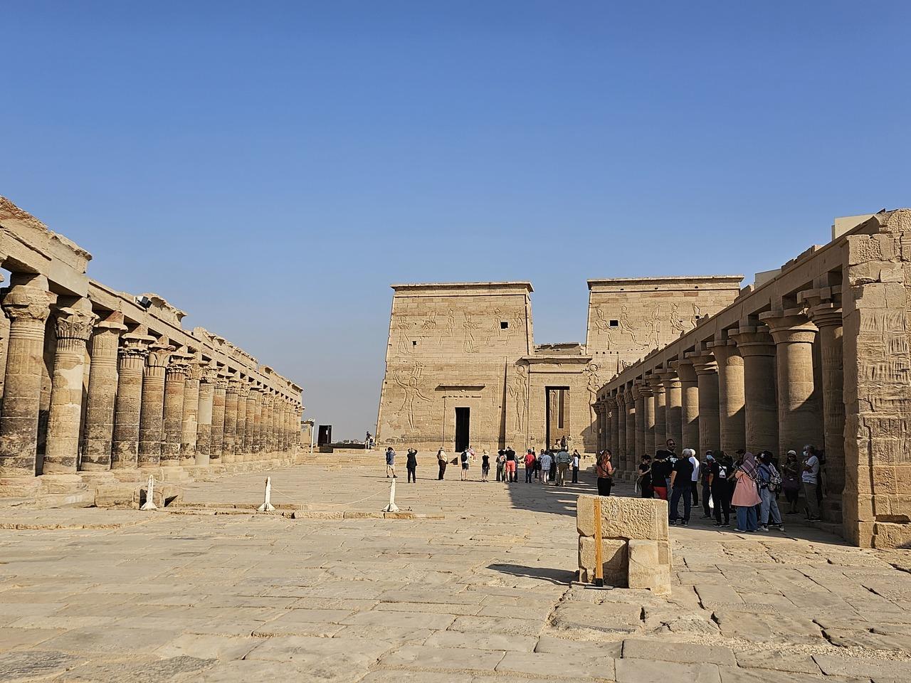フィラエ神殿(イシス神殿)は、古代エジプトの神オシリスの妹であり妻でもある女神イシスに捧げられた神殿で、紀元前3~紀元前4世紀のプトレマイオス朝時代にクレオパトラの父プトレマイオス12世のよって建てられた。