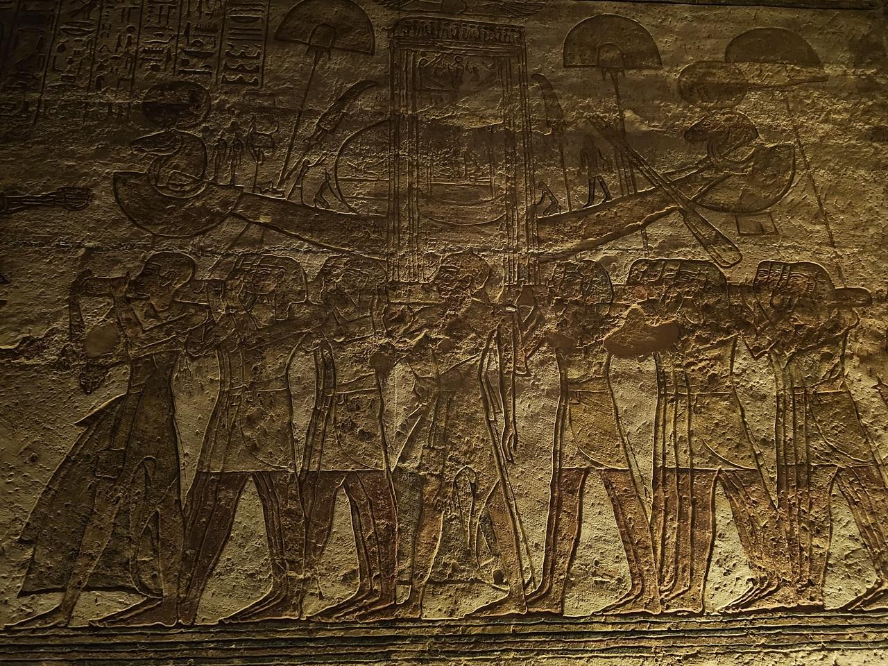 太陽が動く中、最初から最後までラムセス2世の像には太陽の光があたり続け、闇の神とも言われていたプタハには光が当たらない設計になっているそう。