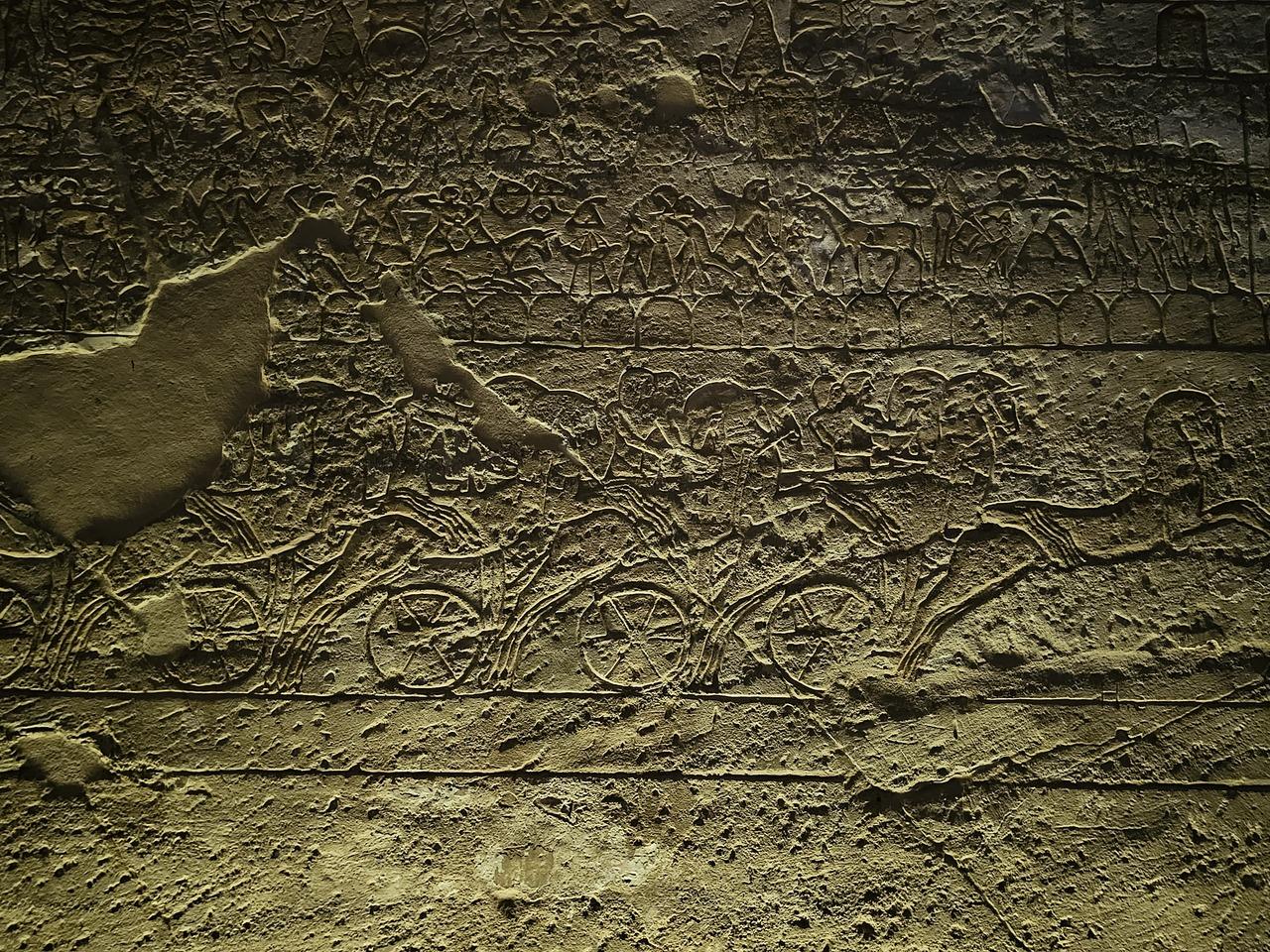 列柱の後方の右側には、カディシュの戦いのレリーフ。
