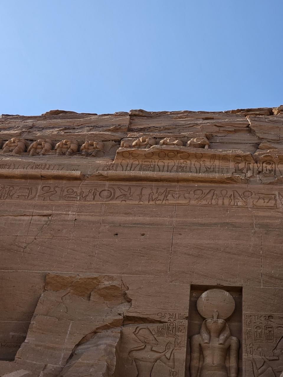 神殿上部に太陽神ラーの使い、ヒヒが並んでいる。