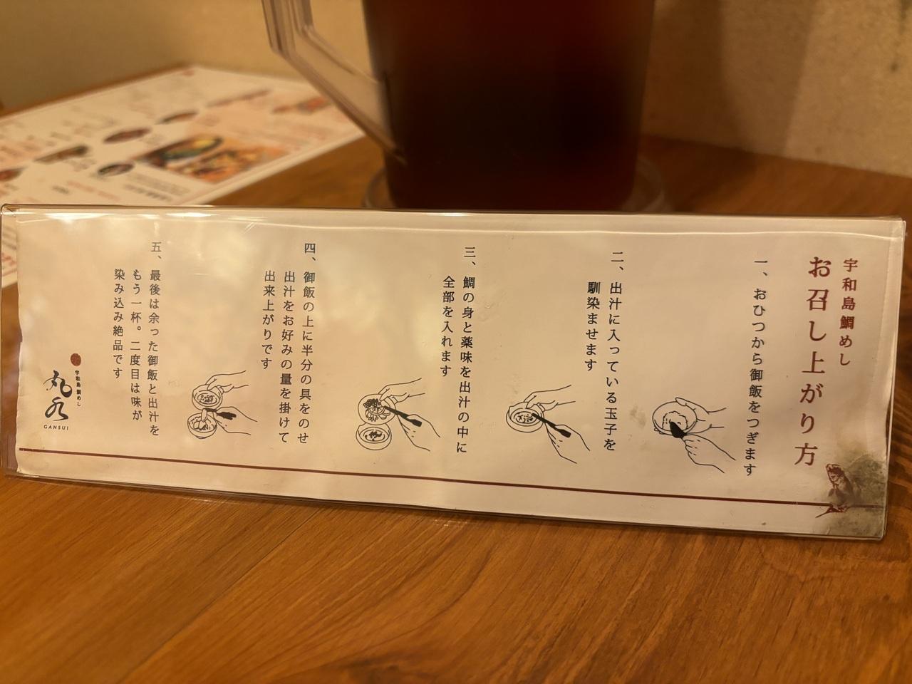 宇和島鯛めしの食べ方が載っています。