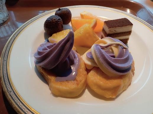フルーツとゼリー、ブルーシールソフトは紫芋とバニラのフレーバー。