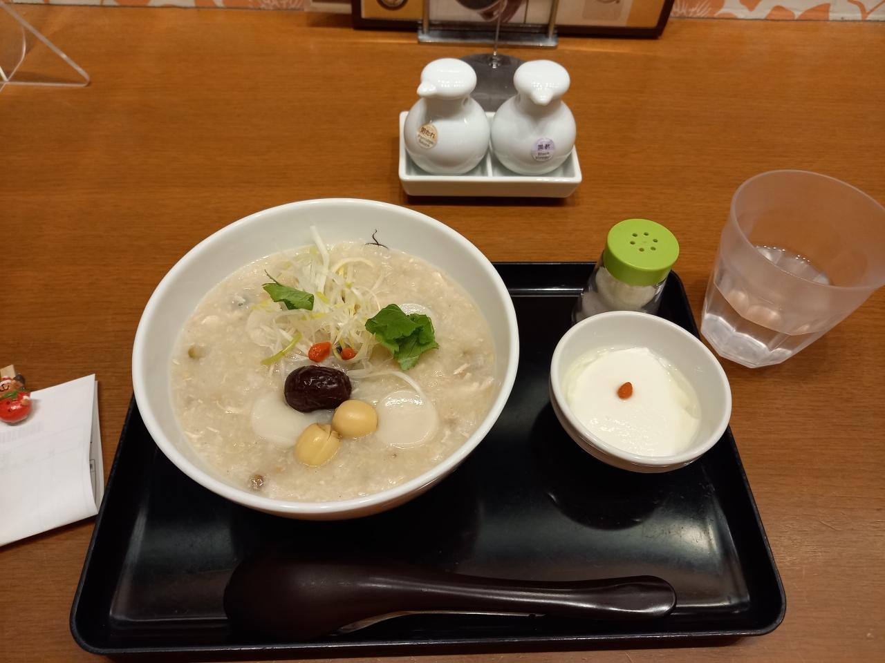 仙台駅近くのおかゆのお店で食べた薬膳おかゆとサービスの杏仁豆腐