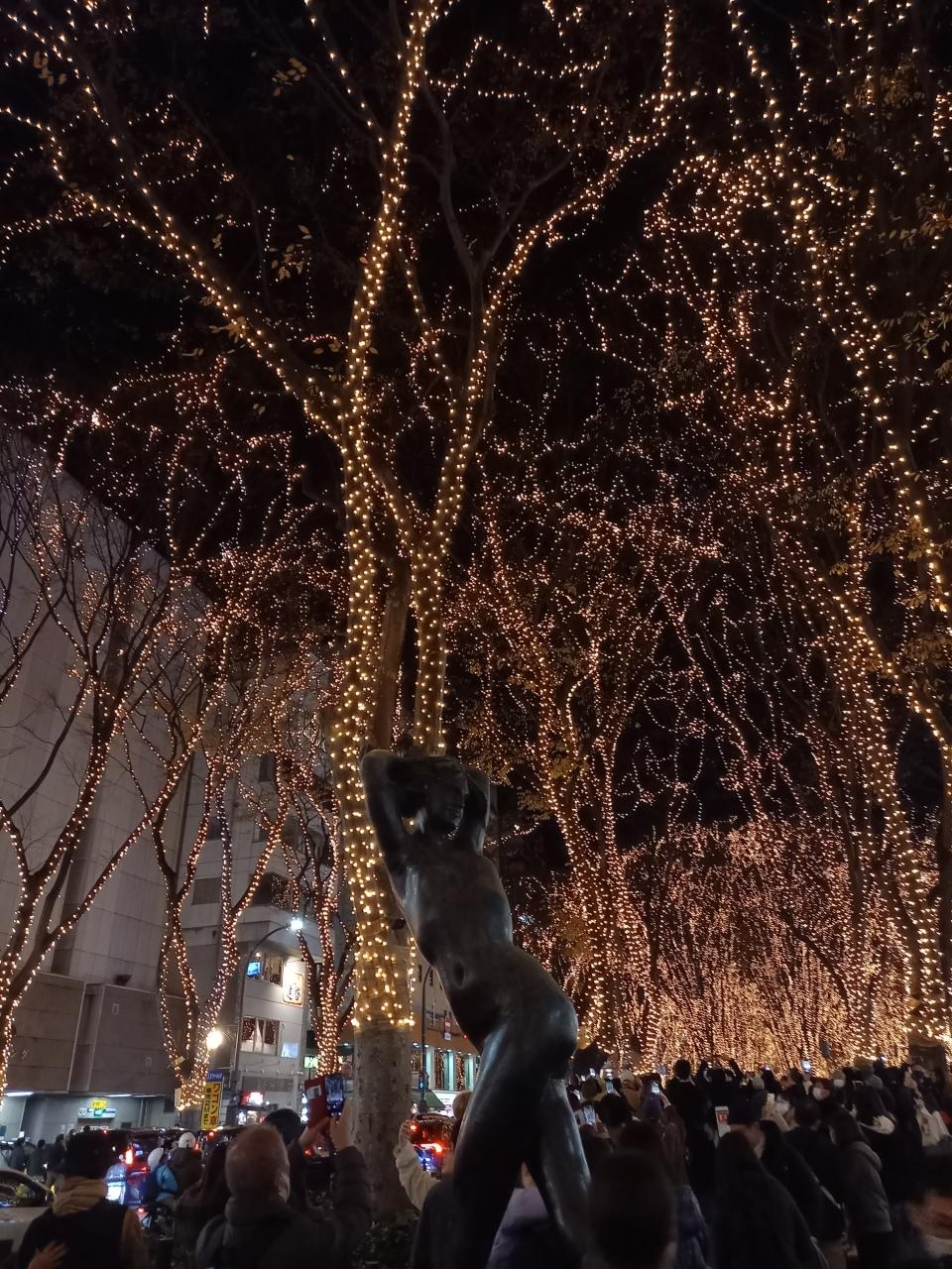 仙台駅から二つ先の勾当台公園駅で降りたら、誰でも滑れる特設のスケートリンクがあったり、始まったばかりで賑わっていたクリスマスマーケットの会場があったり、すぐ近くには背の高いケヤキ並木が続いている定禅寺通りがあって、SENDAI光のページェントも行っていました。沢山の人が見に来ていて、花火大会の会場のように、とても混雑していましたが、とてもきれいでした。るーぷる仙台の一日乗車券を買って、仙台城址や大崎八幡宮にも行きました。レトロ調の観光バスでしたが、乗る人が結構いて座れずに立って乗っている人達もいました。仙台駅からは予定通りの時刻に発車しましたが、他のバス停では予定通りの時刻に来なくて、かなり遅れて来たりしたので、時間に余裕を持って移動の計画をした方が良いと思いました。
