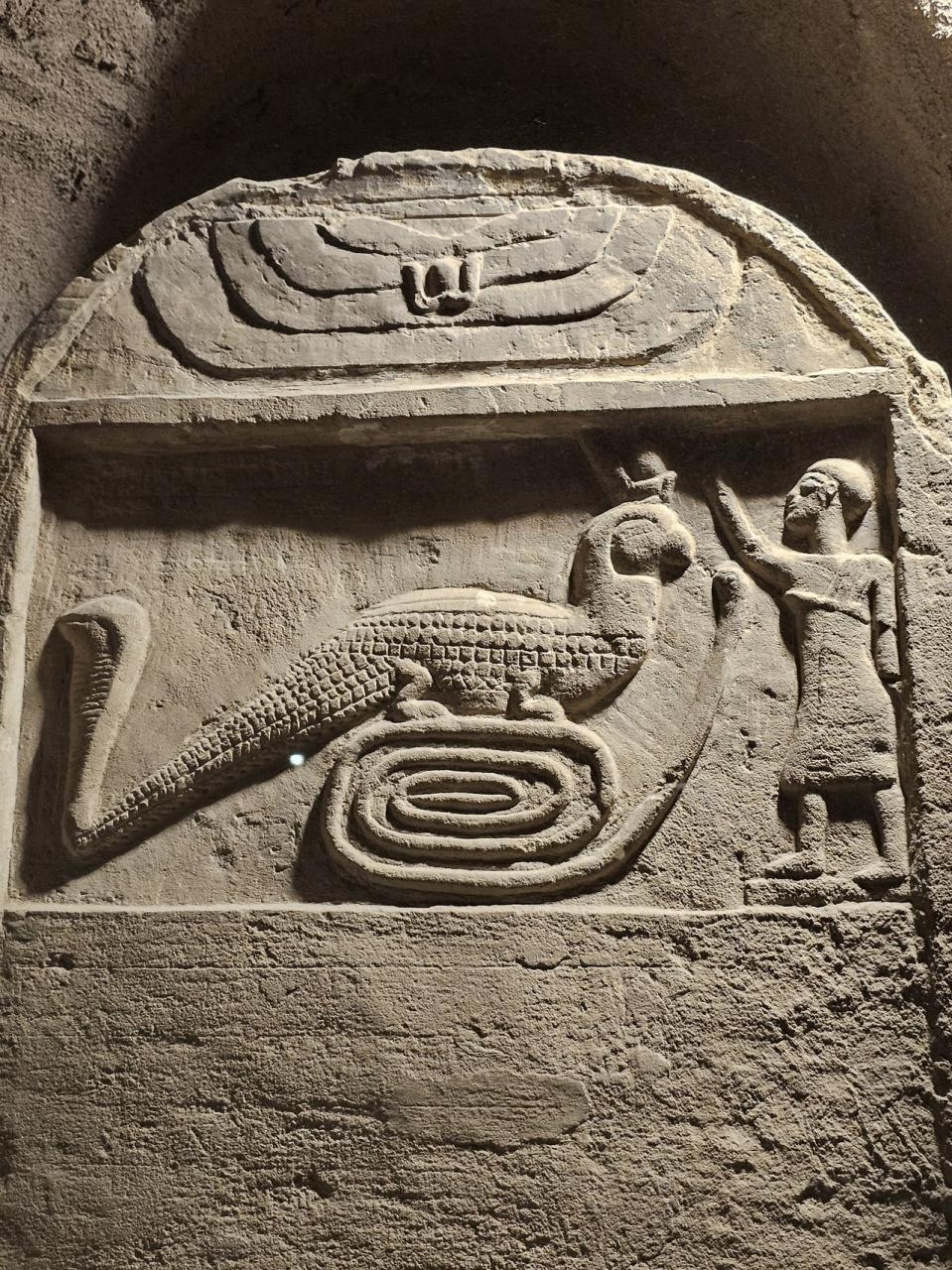 ライオン頭のセクメト神?など3体のレリーフがあり、3つの季節である氾濫、蒔く、収穫を表しているよう。