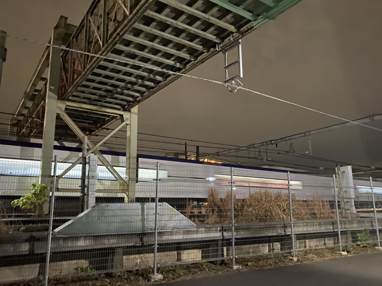 網目の隙間が広い場所がちらほらあるので、隙間から線路を撮影できます。