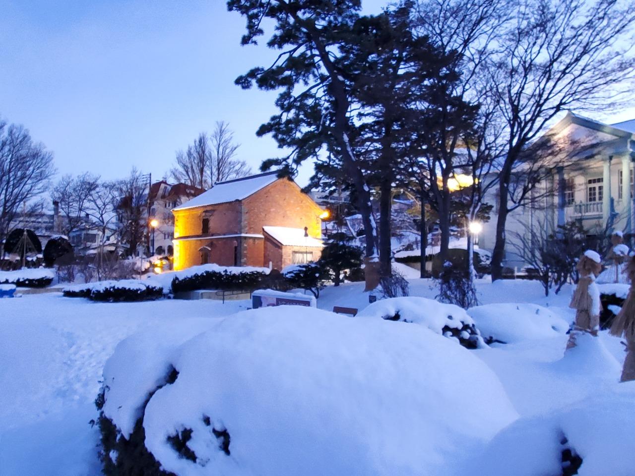 さて、金森赤レンガ倉庫。クリスマスツリー光ってます。