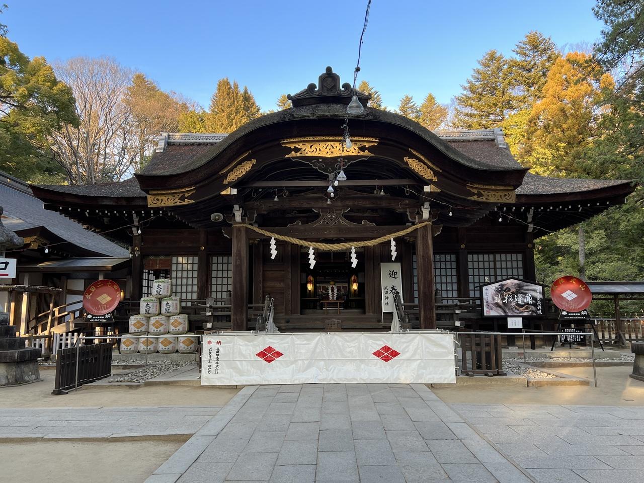 武田神社行きのバスは年末年始運休とのことで、別路線のバスが近くを通ると案内がありましたが間違えて終点まで行ってしまいました。バス終点から歩いて10分、武田神社に到着。