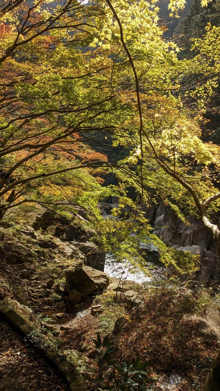 さて、今日のメインの三段峡に入ります。国の特別名勝。日本百景、森林浴の森100選、日本紅葉の名所100選