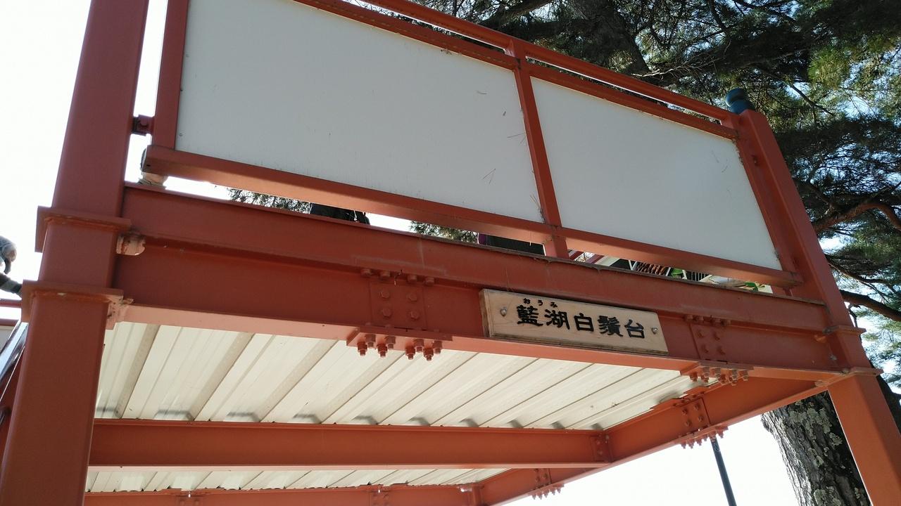 拝殿の前に設けられた、ちょっとした展望台に登り、琵琶湖を臨む。