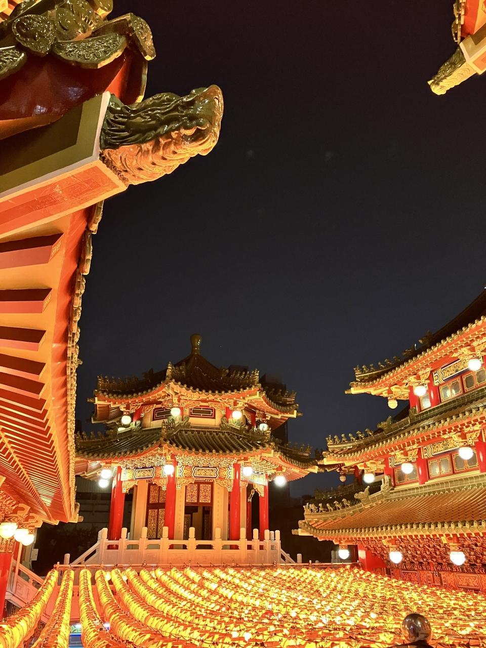 激しくイルミネーションが煌めくお廟。