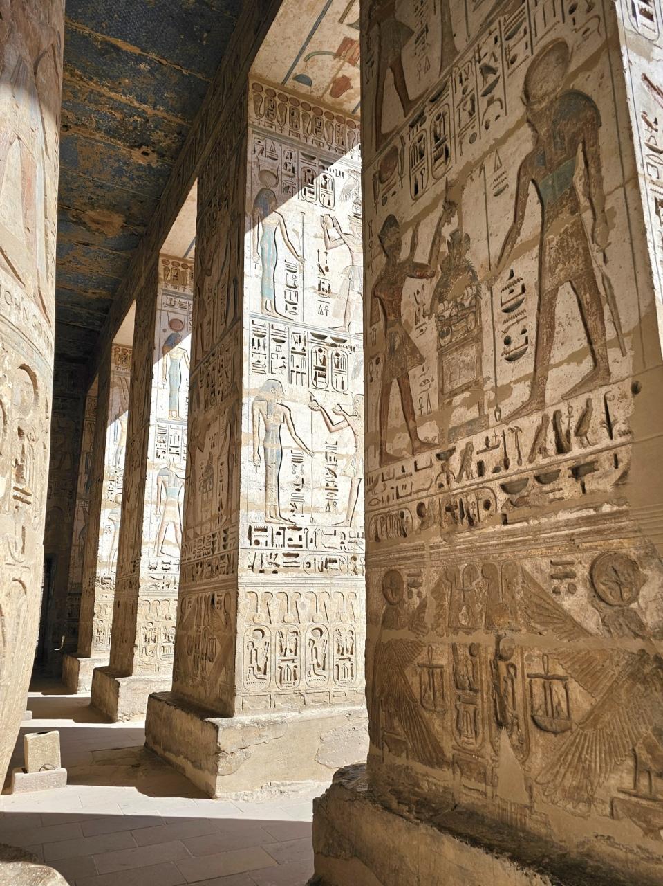 午前中に見たラムセス3 世葬祭殿に比べると色彩は落ちてしまっているけど、立派な柱の数々。