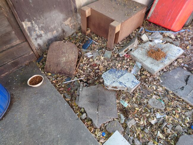 ここのバイクの人たちが猫たちを世話してくれています。 -