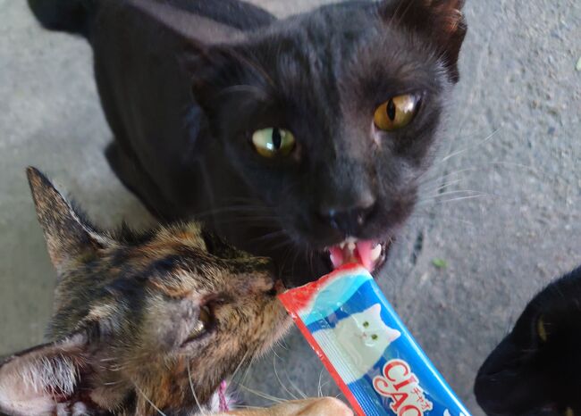 しかし、チュールは別。猫にとって、こんな美味しい物はないようです。