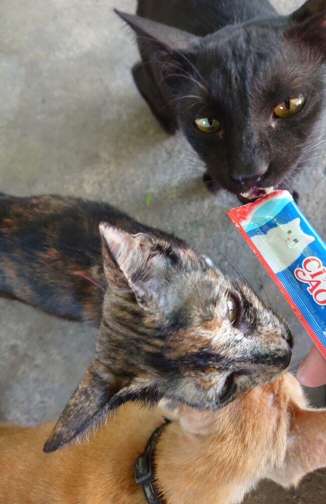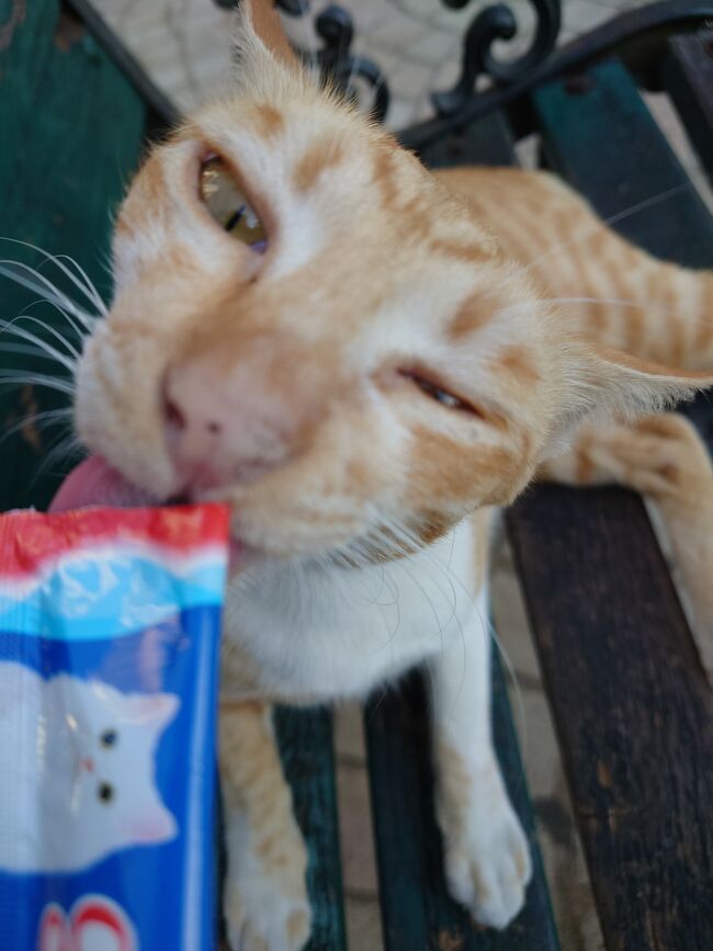 転倒すると怖いので、バイク便は避けているのですが、猫ちゃんたちの恩人なので、駅まで乗りました。100Bでおつりは猫ちゃんへといって渡しました。