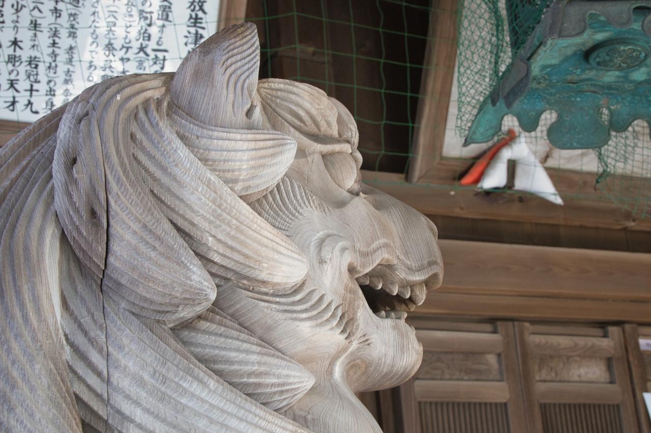 ここの神社には木で造られた大ききくて、立派な狛犬がいました。木の狛犬を見るの初めてかもしれません。