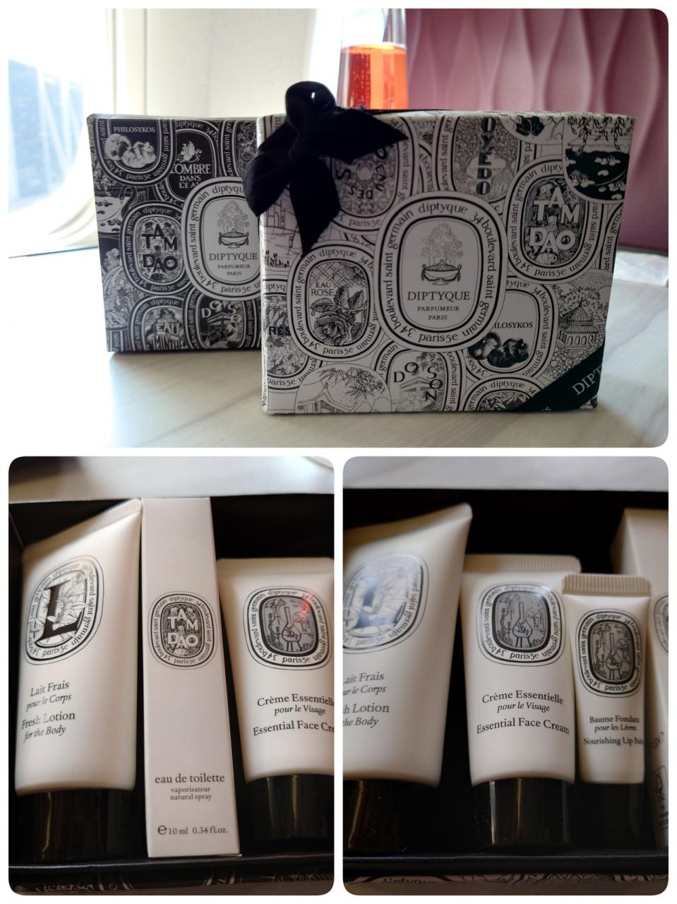 シートの配列は1-2-1 主人とは窓側の席に前後にして、それぞれが好きなように過ごしました。アメニティは巾着タイプのものでした。 -