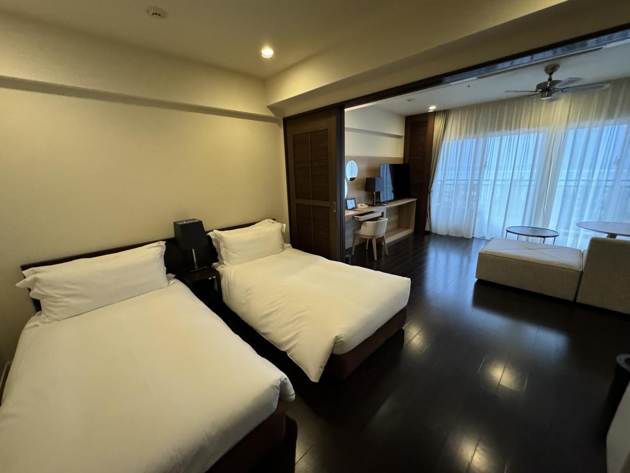 今宵の宿「カフーリゾートフチャク」へ到着。通された部屋はマンションのように広い洋室。カフーリゾートフチャク コンド・ホテル 宿・ホテル