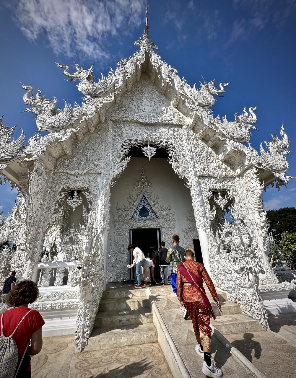 こんな細かい細工の真っ白い寺....そら第一インパクトは凄い...