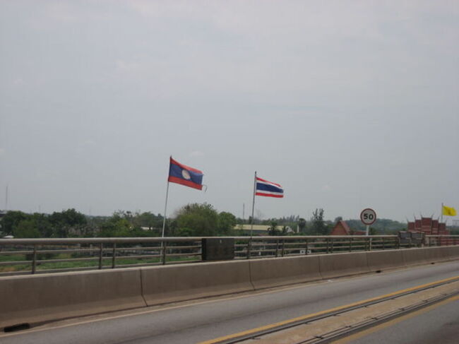タイのノンカーイから友好橋を渡ってラオスにも入ります。振り返るとタイ側には近代的な建築が見えます。