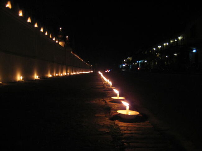 到着した夜は参道にろうそくが灯っていました。仏教の行事でしょうか。