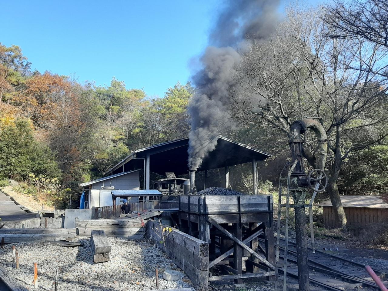 明治時代のSL車両で、奥にあるSL名古屋駅との間で乗ることができます。 -