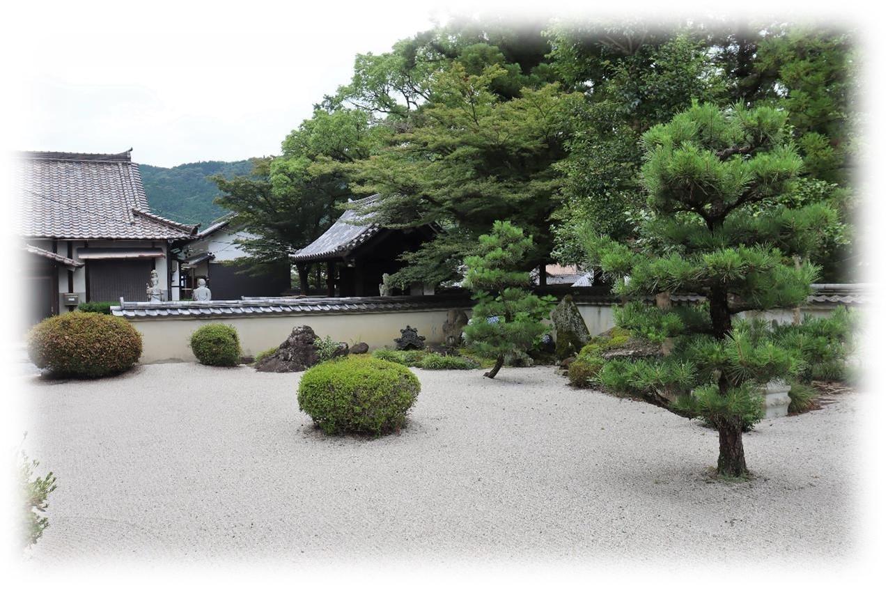 写真は白く飛んでしまいましたが、砂紋が入り手入れされた庭園は禅寺らしい趣があります。 -