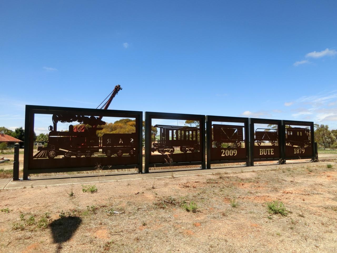 1時間半ほどかけて130kmを走り、到着したのはButeという町です。オーストラリアでは公共の建物の壁に、その町ができたころの風景を描くことがよくあります。これもプレイグランドの公衆トイレですが1920年頃の町の中心部の風景が描かれています。2001年、地元の教師だったJohn Whitney氏によって描かれました。