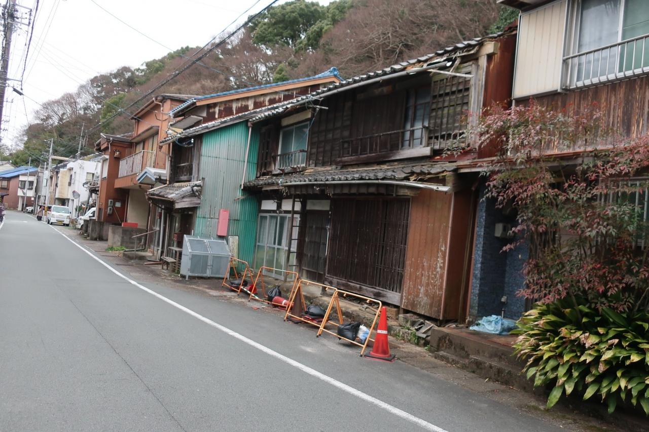 大通りから外れて町中の道を進みます。この辺りはかなり個性的な家が残っています。
