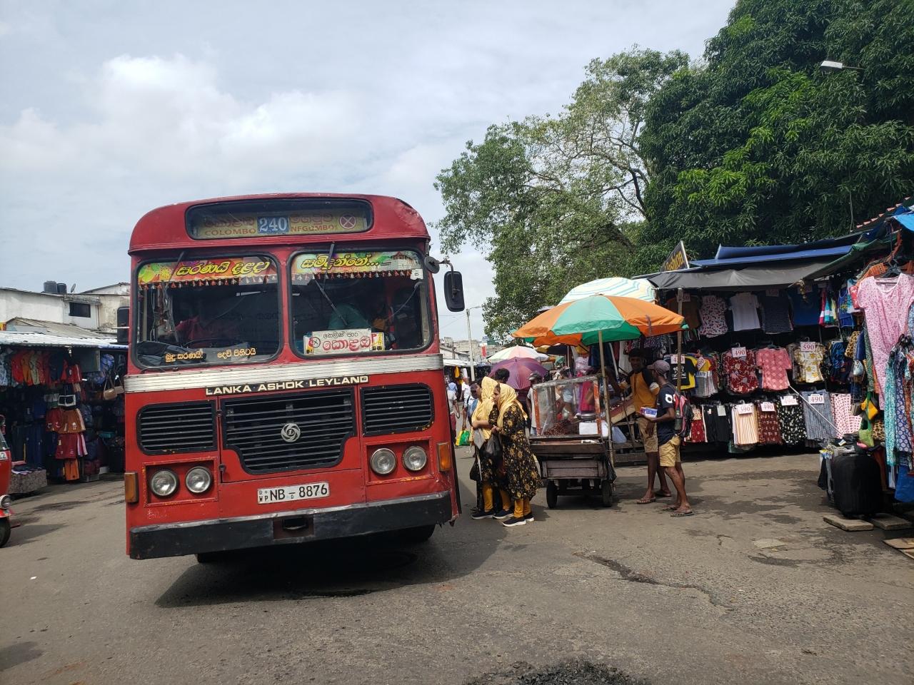 スリランカの空港にて両替とSIM設定したら、空港から徒歩10分くらいのバス停を目指し、コロンボ中心へ向かいます。