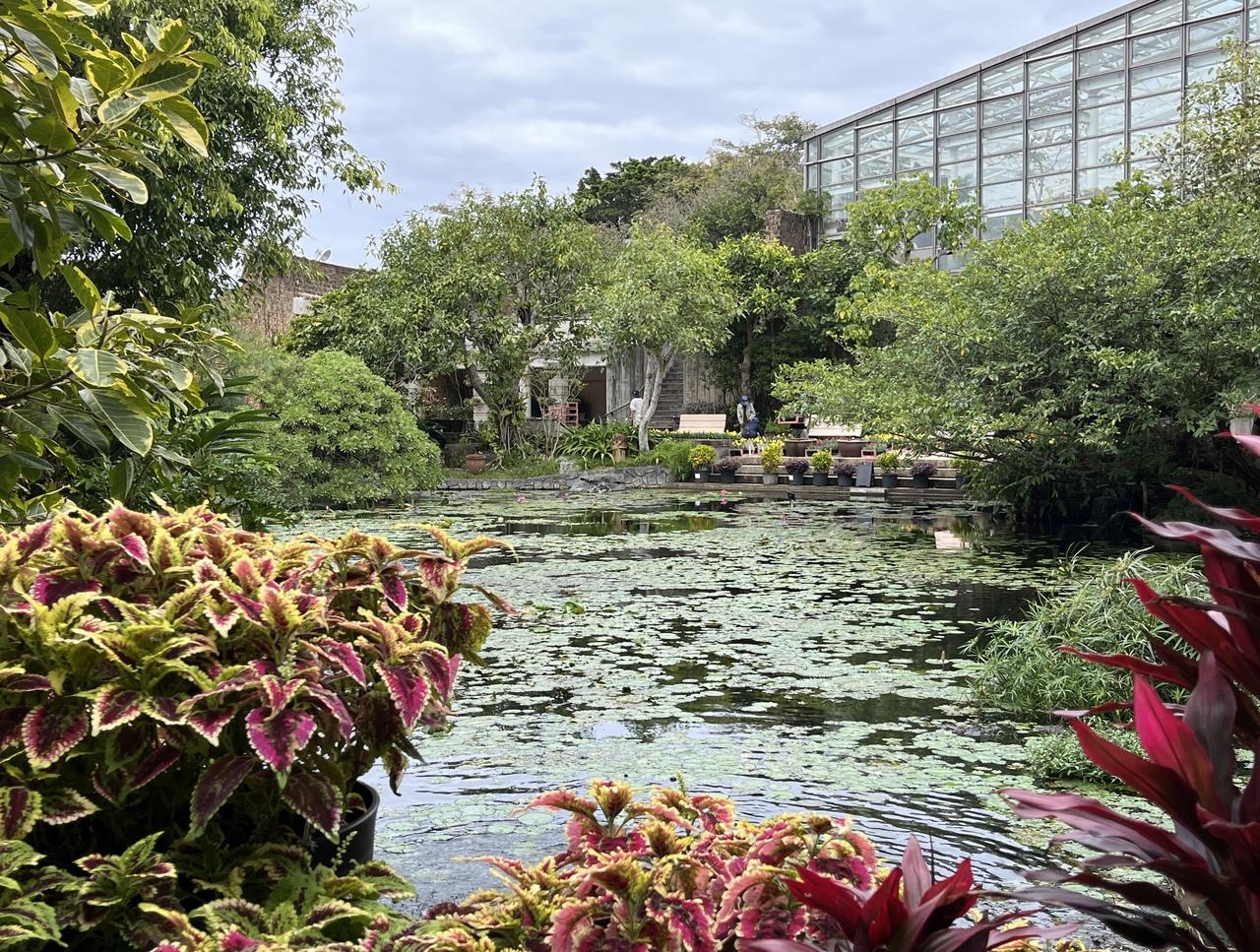 イルカショーを見終え、次は熱帯ドリームセンターを目指します。地図を見て進むけれど、地図が読めない私。これでたどり着けるのか、一人で不安です。庭園があります。 -