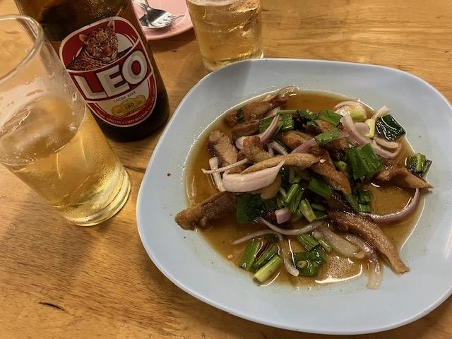 ナムトックムー120バーツ。ビールと相性ぴったり。