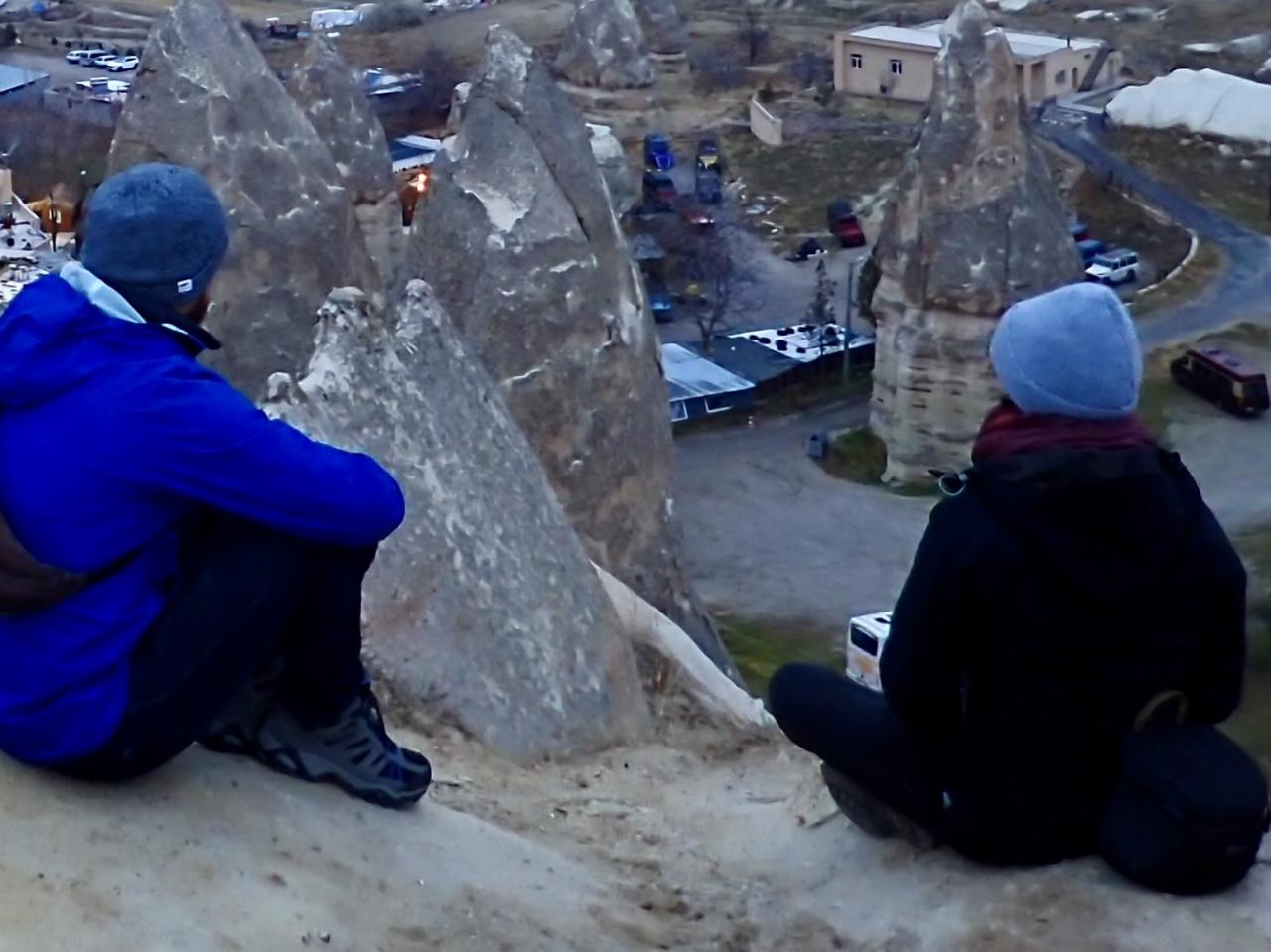 未だ外は暗い中、ギョレメの裏山に登って熱気球を見ます。 -
