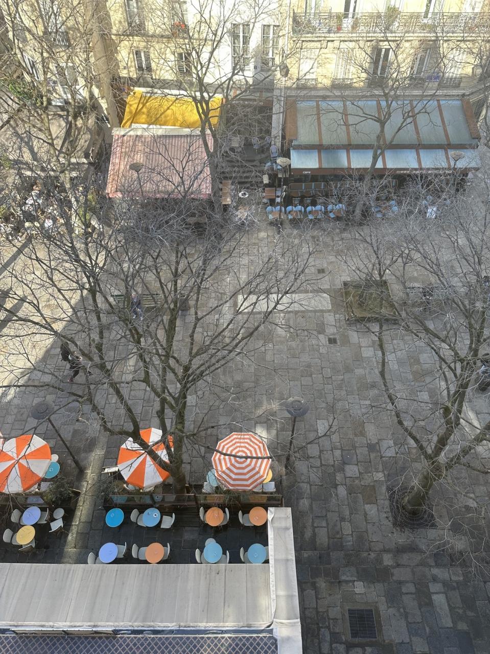 マレのホテルの部屋からの眺め。カフェのパラソルがかわいい。旅6日目の朝。ホテル ドゥ ニース ホテル