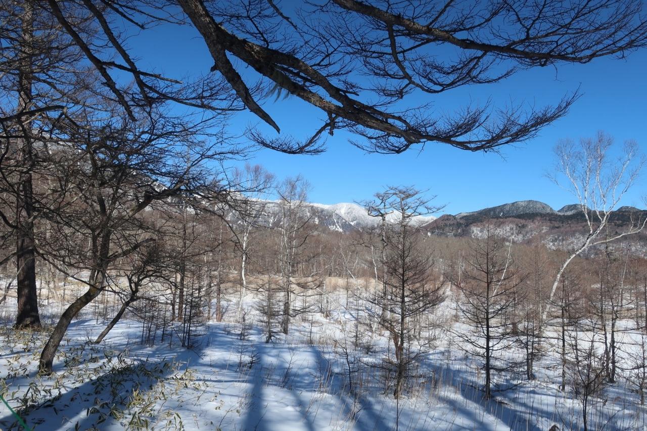 戦場ヶ原の展望台(行きとは違う場所)からの眺め。雪は少なめですが、秋とはガラッと雰囲気が違って素敵です。右方向。