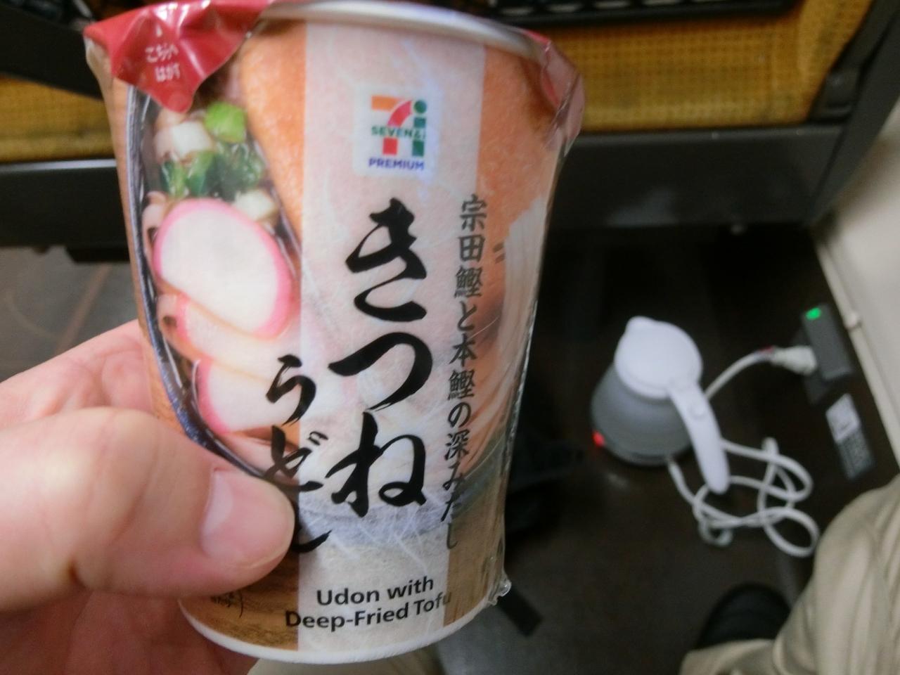 あったまるぅ~。電車の中でカップ麺を食べることに対して不快感を持った方、戻るボタンをどうぞ。申し訳ございません。