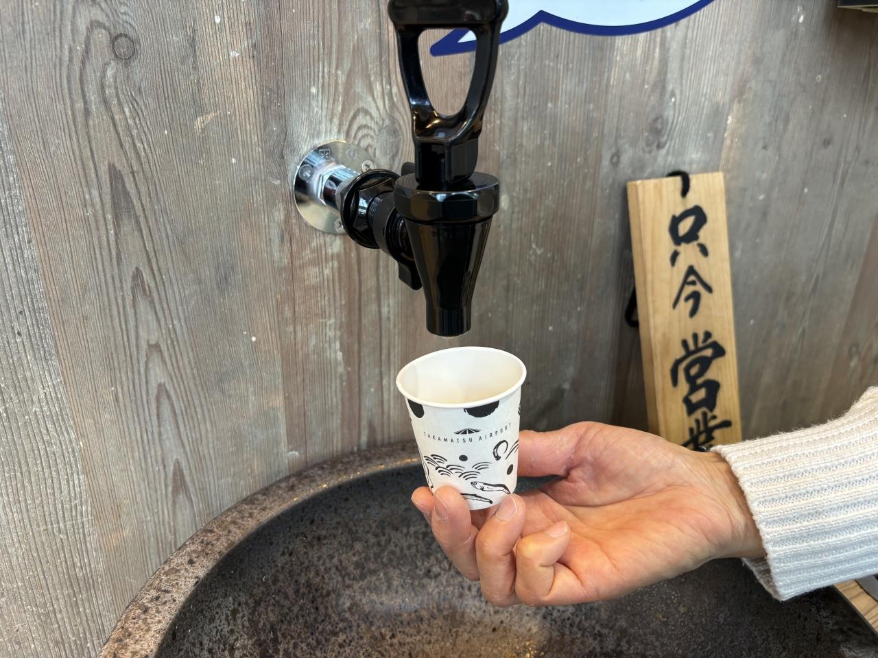 もう一箇所、お土産ショップ前にも、うどん出汁蛇口があった