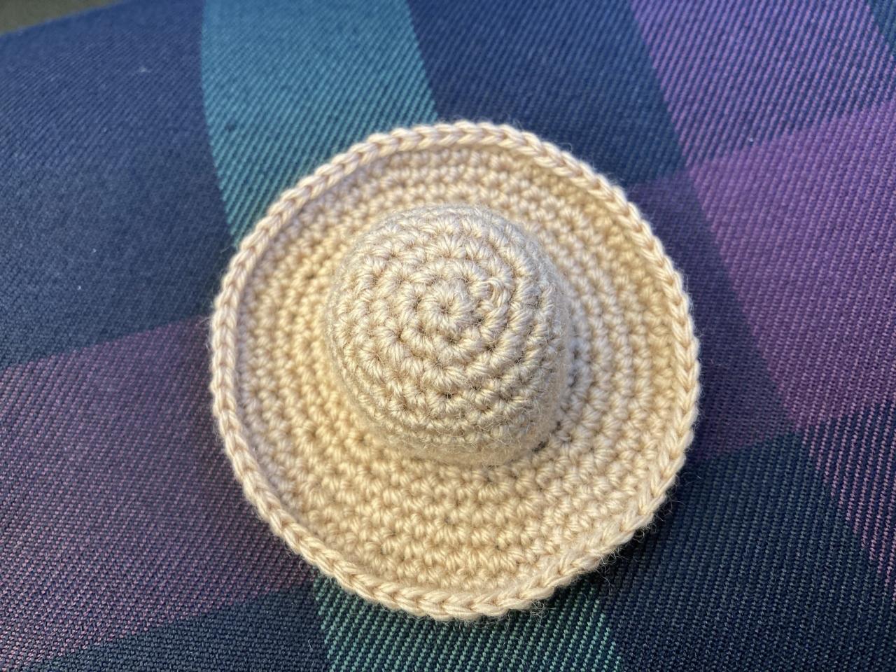 ドールサイズの麦わら帽子を編みました。
