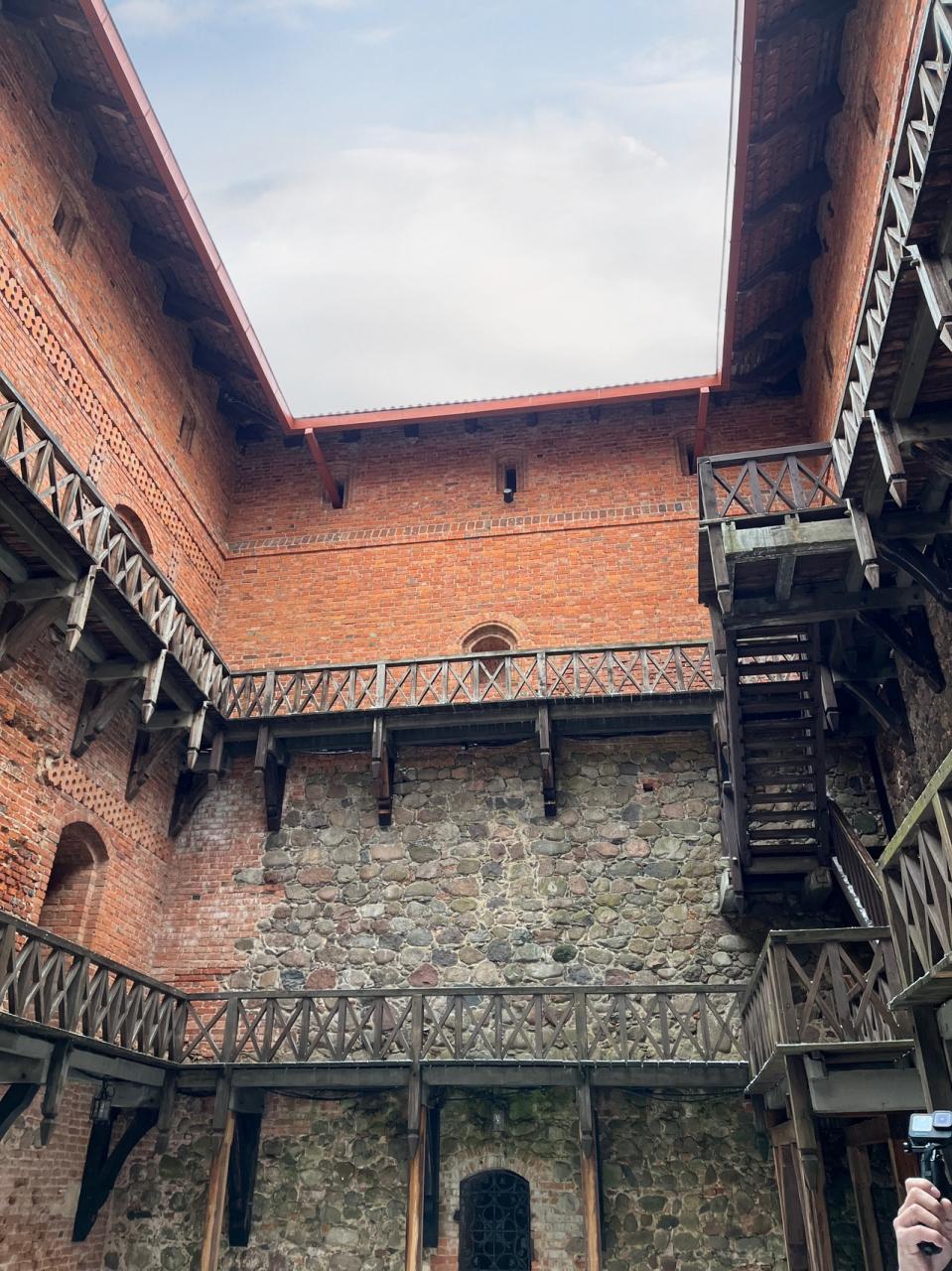 吹き抜けの広場に出て来ました。トラカイ城の見学は終了です。