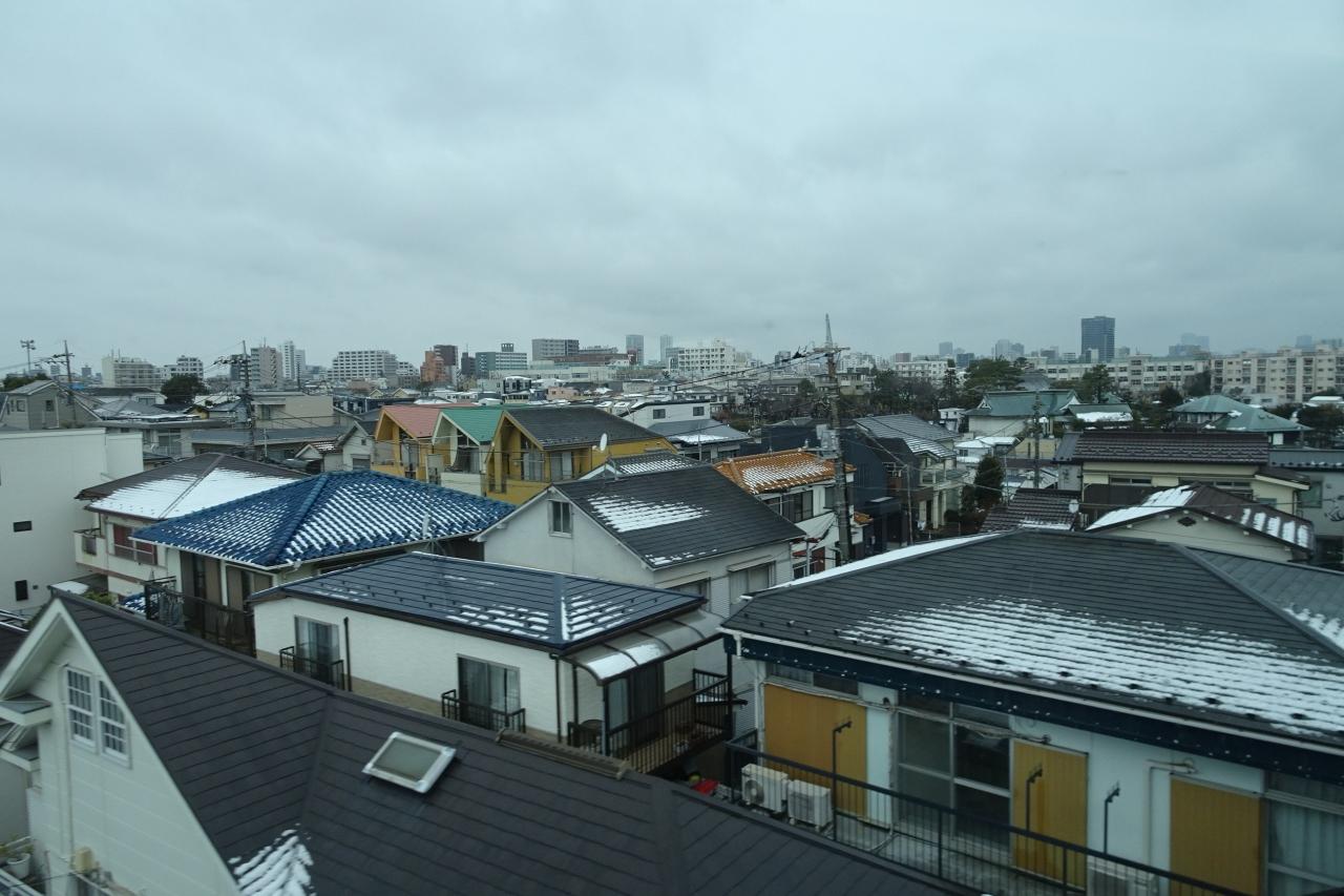 小田原駅を過ぎるあたりから前日の雪が残っています