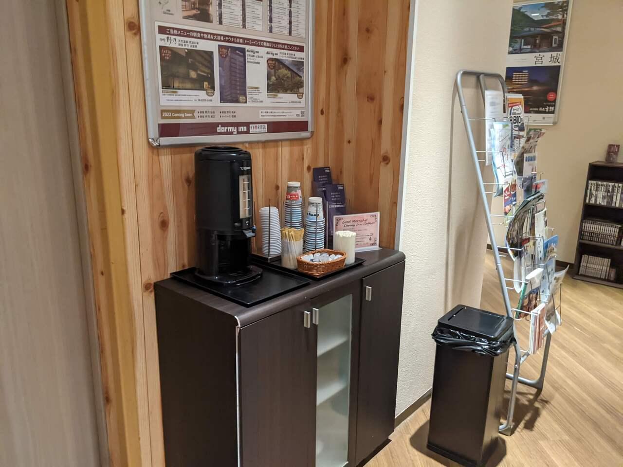 フロントロビーは3階でした。同じフロアにウエルカムドリンクのコーナーがあり、奥に大浴場もあります。