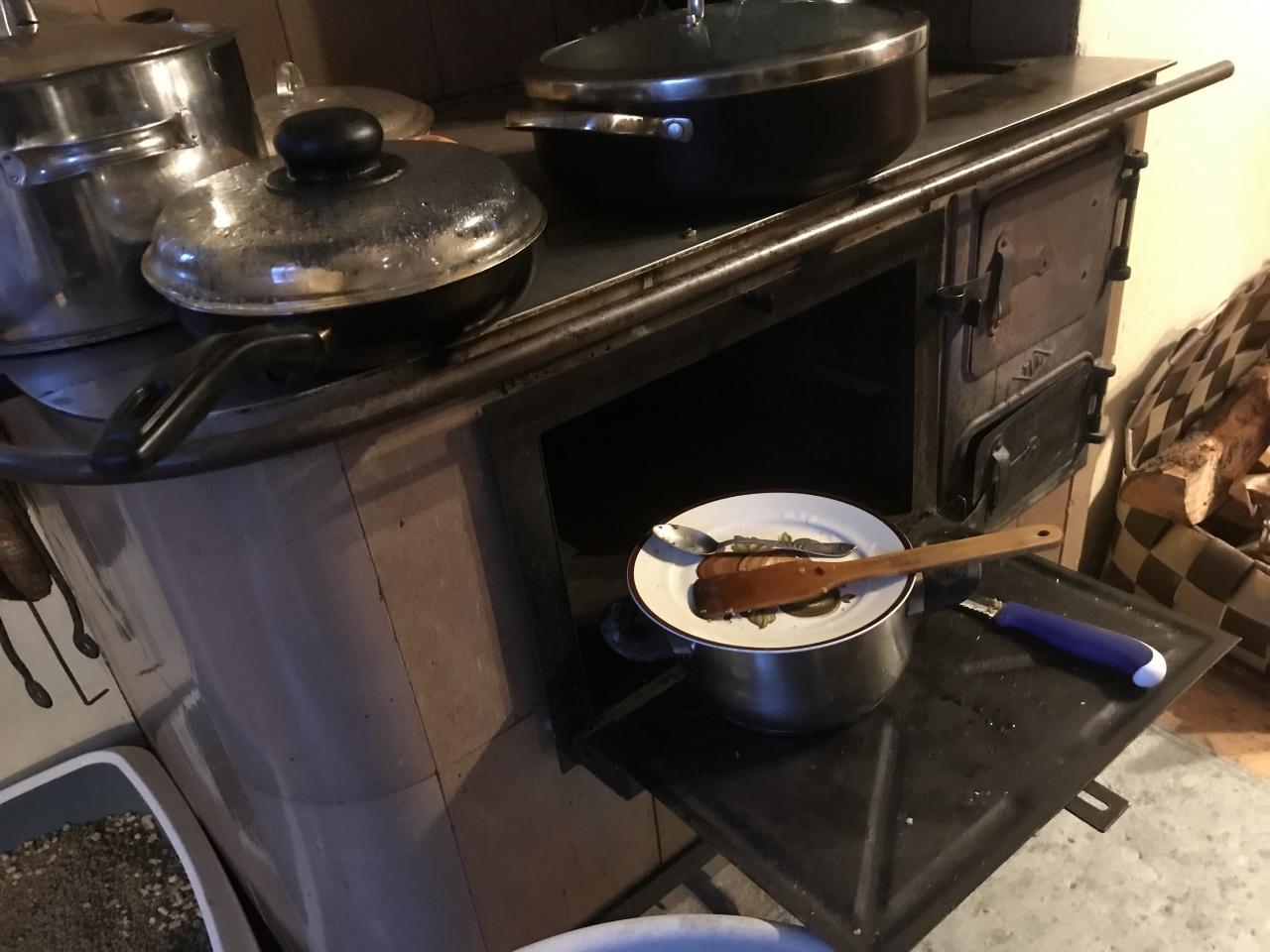 カウンターパートくんの母様は,77歳の誕生日が近いということで,途中でコープに寄って,ケーキと花束を買う。お家に到着すると,わんこが出迎える。とてもかわいらしいお家。お母様は,お料理を薪のオーブンで作って待ってくれていた。ロールキャベツにザワークラウト,キャベツや人参のパイ,名前のわからないオーブン料理,全部ご自宅で作った野菜を使っているとのこと,おひとりで暮らしていて,自分で作った野菜を肉などと物々交換したりして,なんの不自由もなく暮らしているという。ソ連時代を生き抜き,三人の子どもたちを立派に育て,退職後にこの漁村で暮らし始めたという。出てくるお茶もすべて自分で作ったハーブティー。風邪など引いてもハーブの調合で全部治しちゃうらしい。素敵だ。ハッピーバースデーソングを歌い,食事を始める。うなぎの燻製は,脂が乗っていて最高に美味かった!