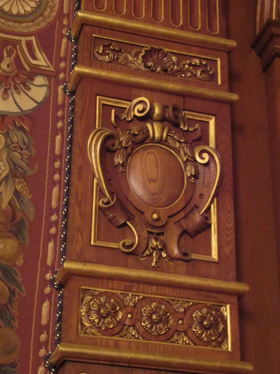 格子形に組まれた天井には、フランス人画家が描いた油彩画24枚と金箔地に模様を描いた絵が12枚があります