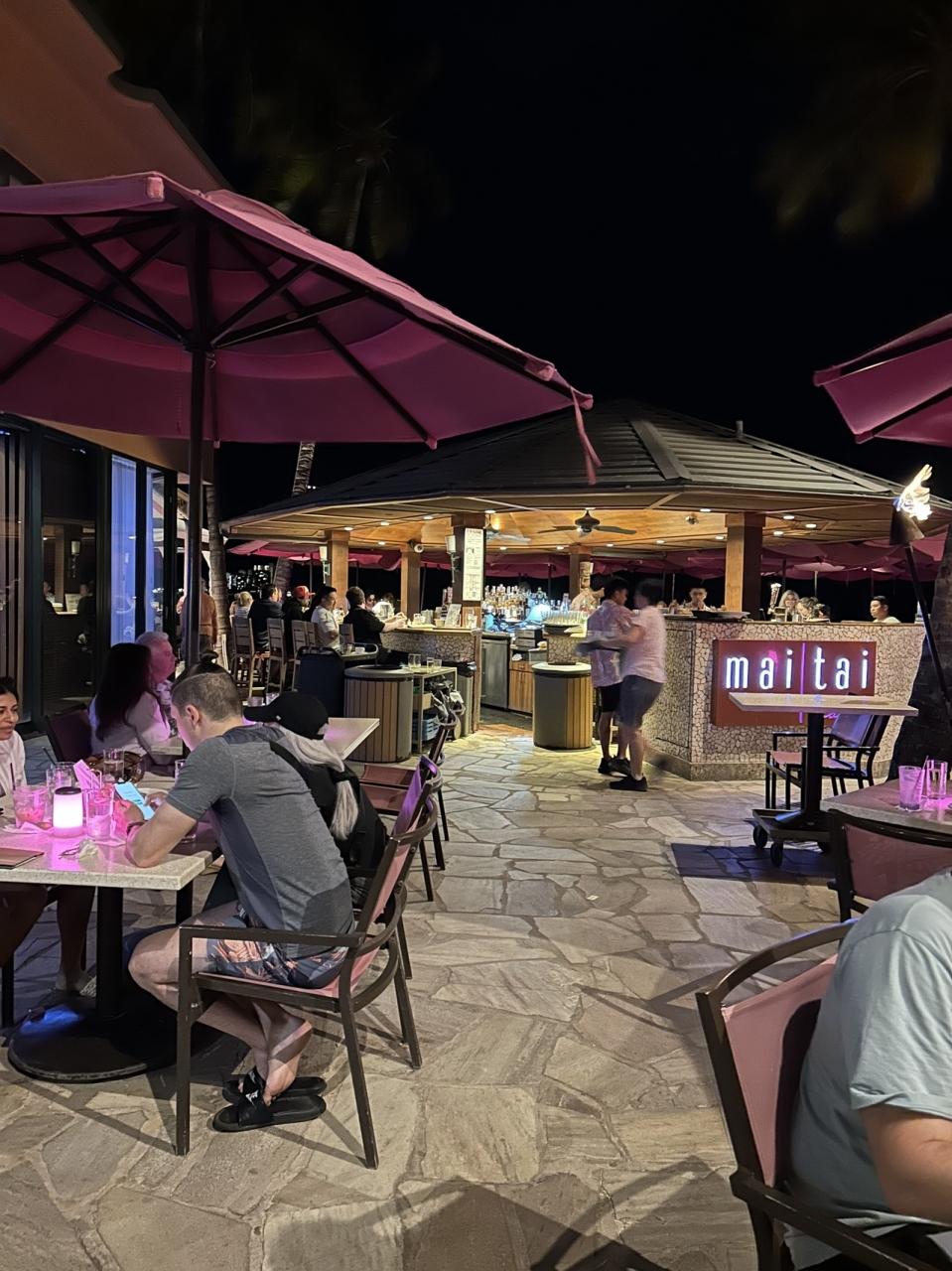 夜は「ロイヤルハワイアンホテル」の「マイタイバー」に。116ドル使いました。