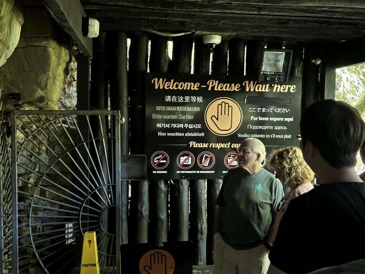 この洞窟は大きな鍾乳洞です。「グローワーム・ケーブ」とも呼ばれています。「グローワーム」とは土ボタルのことです。 -