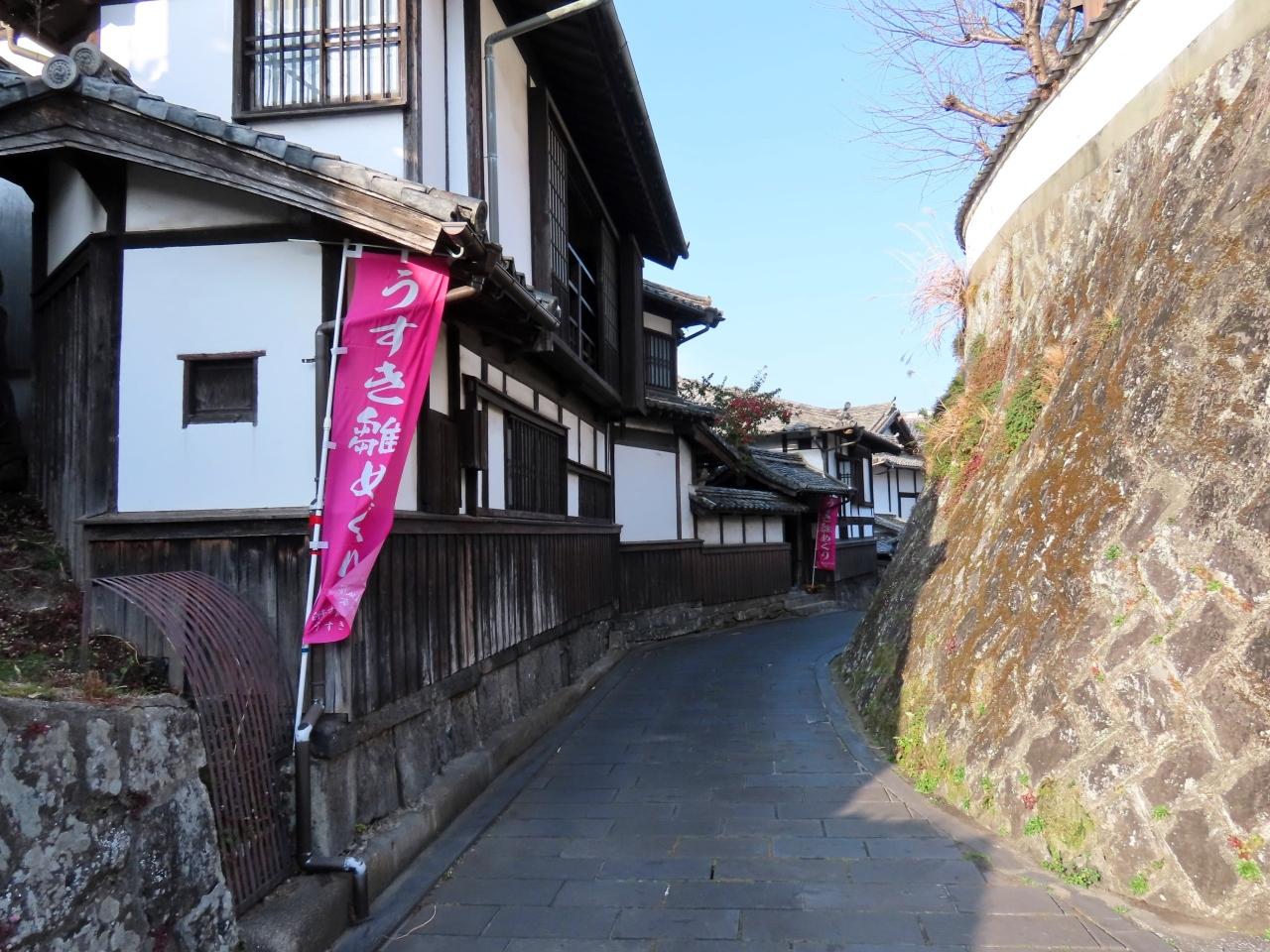 八町大路へやってきました。1600年に入封した稲葉家の時代から始まったという歴史ある商店街です。朝早いこともありますが、あまり人がいません。