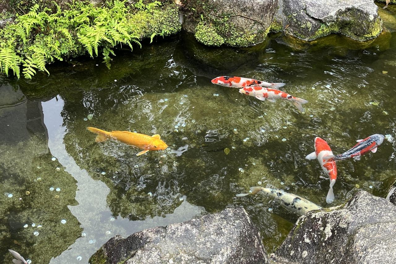 池には鯉が。