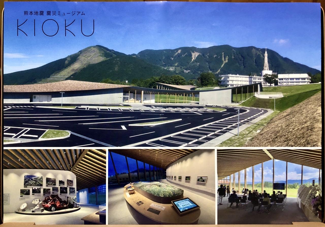 キャンパス手前には、駐車場と熊本地震震災ミュージアム【KIOKU】
