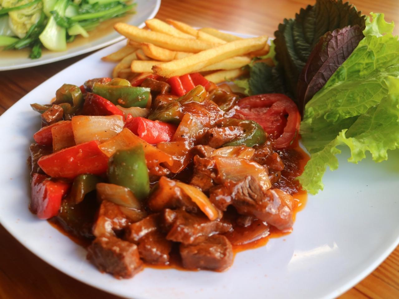 朝食はボーコー(ビーフシチュー)とフランスパン。